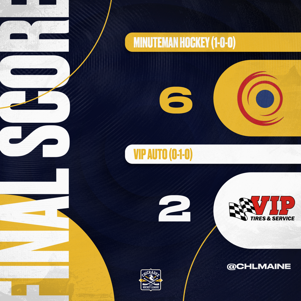 The Minuteman put together a commanding performance Sunday night, skating past VIP Hockey 6–2 in a game defined by balanced scoring and strong two-way play.